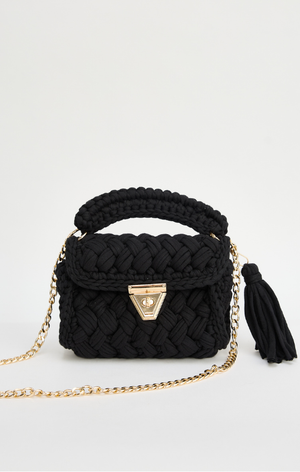 Includes tassel detail and chain strap