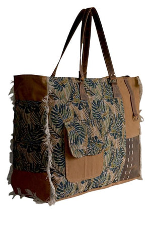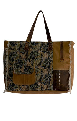 Hopofly - Canvas & Leather Mosaic Weekender Bag - JH-6047