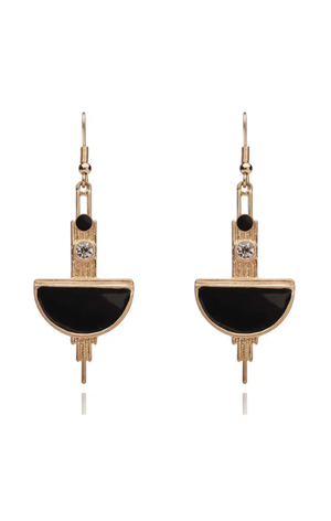 Simply stunning! These Vintage Art Deco 1920s Earrings make a real statement with gold finish and inlaid with black enamel and crystals. These vintage gold earrings are influenced by the golden era of the 1920s and the magnificent architecture of the time. Think Empire State Building. The vintage style drop earrings can be worn as a great party look or with a simple little black dress for extra impact.