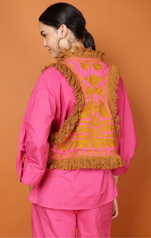 Embrace your free spirit with the Anannasa Adele Bolero in pink. This effortlessly chic layering piece channels boho vibes with relaxed elegance and understated confidence. Drape it over flowing dresses, vintage tees, or delicate camisoles for that perfectly undone, wanderer-inspired aesthetic. The pink tone pairs beautifully with earthy palettes and natural textures, making it a versatile essential for the modern bohemian. Layer, mix, and style with fearless abandon—this bolero is your ticket to laid-back, artistic allure.