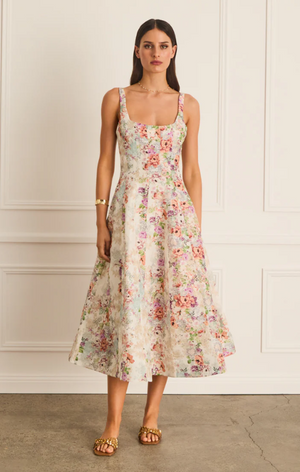 Elevate your wardrobe with the Dianthus Nicolette Dress by Aqua Blu Australia. A sophisticated square neck midi dress exudes contemporary elegance, while the adjustable e-hook shoulder straps ensure a perfect fit.