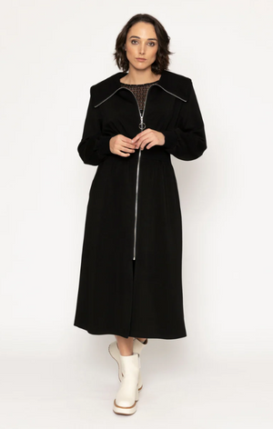 Stay warm and stylish with the Darwin Coat. With a full zip from collar to knee, this dress allows for easy movement and a flattering fit. The long sleeves and ribbed waistband and cuffs provide extra comfort and coziness.