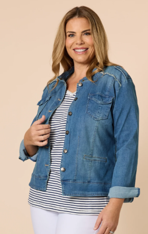 Elevate your denim game with Threadz's audacious Military Denim Jacket—a wardrobe essential that demands attention. Crafted from super-stretch, lightweight cotton denim with garment-dyed richness, this jacket shifts and transforms with every light source, refusing to settle for flat, predictable colour. Tarnished silver hardware anchors the bold button-up design, while single-button sleeve closures invite you to roll them with attitude. It's the fearless layer that separates the ordinary from the unforgettable.