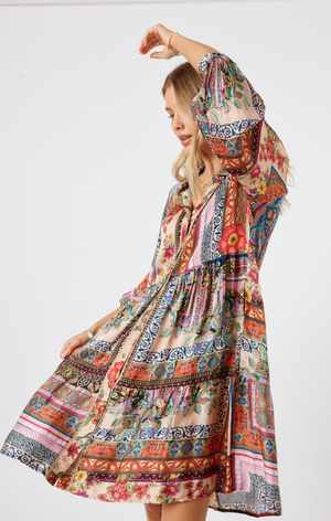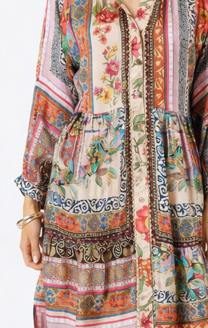 This beautiful dress is effortlessly stylish and wonderfully easy to wear, making it a perfect choice for the autumn trans-seasonal months. The fabric is truly stunning, with rich colours and intricate patterns that create a standout look with very little effort. Pair it with fabulous black boots for a chic feel, or dress it down with funky sneakers and add a denim jacket when the weather cools.