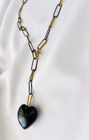 This lovely gold and black steel chain necklace, is a season's must! Very unique and fashionable jewellery, stainless steel chain gold plated in 14k gold.