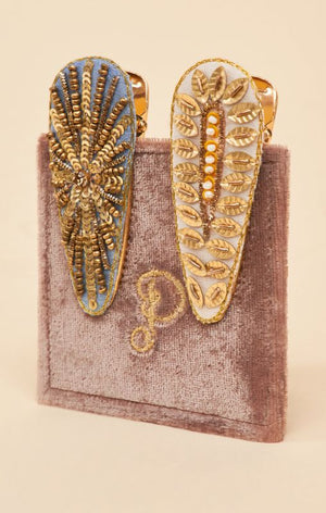 Calling all fashionistas! Introducing our spectacularly decorative wheatgrass and starburst hair clips. Combining sunrise inspired design with a splash of vintage inspiration, these handmade hair clips will have you feeling timeless and charismatic with minimalist tones. Beautifully hand made in India these come with our iconic mini gift bag and on a velvet card for the most thoughtful gift for someone or treat for yourself.