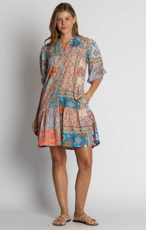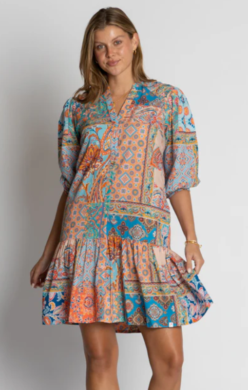 Embrace effortless elegance with the Ibisa Wisconsin Dress, made from 100% breathable cotton to keep you comfortable all day long. This relaxed-fit dress, designed in Australia, showcases a striking digital print that updates classic style with a fresh, modern edge. Practical side pockets blend seamlessly with its chic design, making it ideal for daily wear or casual occasions. Wear it with sneakers for a relaxed vibe or dress it up with sandals for a stylish summer look. Featuring a Narau collar transitioning into a V-neck, button-through front, shoulder stitching details, and a gathered A-line shape, this above-the-knee dress combines comfort and sophistication effortlessly.