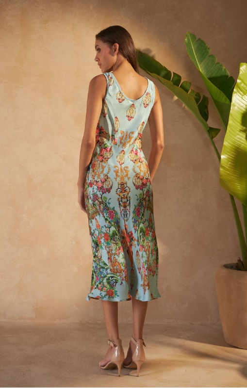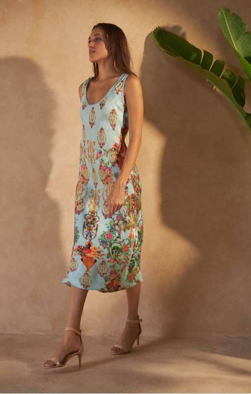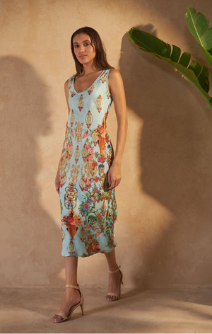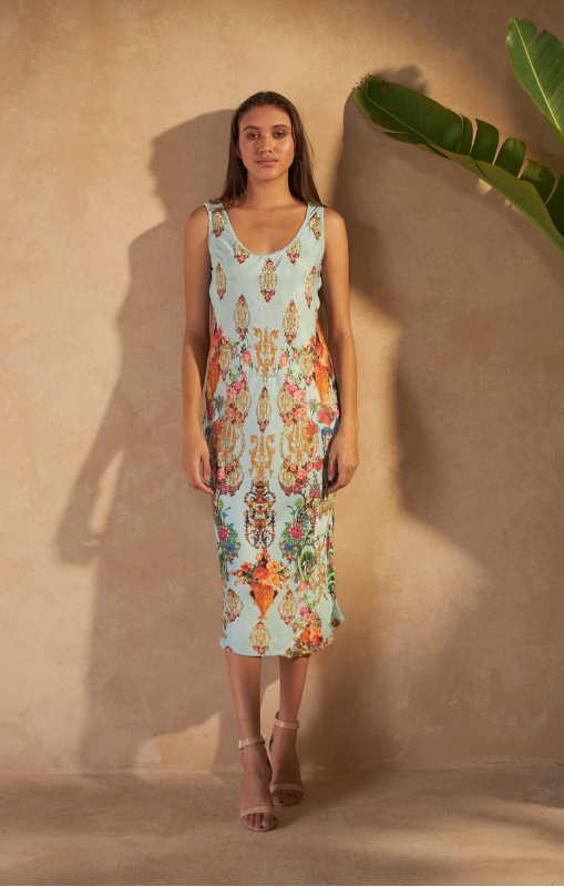 Effortlessly chic and feminine, the INOA Tulip Dress in Flowers Blu is the perfect blend of comfort and sophistication. Featuring a flattering tulip silhouette with a classic scoop neckline, this midi dress is designed to drape beautifully for all-day wear. The luxurious fabric blend of 92% polyester and 8% Lycra ensures a lightweight feel with just the right amount of stretch, making it both breathable and figure-flattering.
