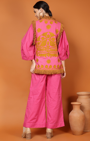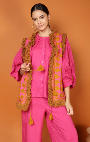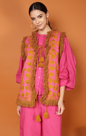 Meet your new go-to layering piece! The Anannasa Adele Vest in pink is here to add that effortless boho charm to your wardrobe. Throw it over a slip dress, pair it with your favourite jeans, or style it however your mood takes you. With its relaxed vibe and undeniable charm, this vest is ready to become your closet's best-kept secret. Get ready to turn heads with understated, carefree style. Oh, and did we mention, it's also warm!