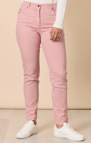 Gordon Smith Slim Leg Miracle Jean in Blush combines flattering high-rise styling with innovative tummy control panels for all-day confidence. The mid-weight super stretch fabric moves with your body, delivering comfort without compromise. Featuring a classic 5-pocket design and metal zip fly, these jeans transition effortlessly from weekend wear to travel. The slim leg silhouette creates a polished look while the premium denim ensures durability. Note: This style runs large—we recommend sizing down for the perfect fit.