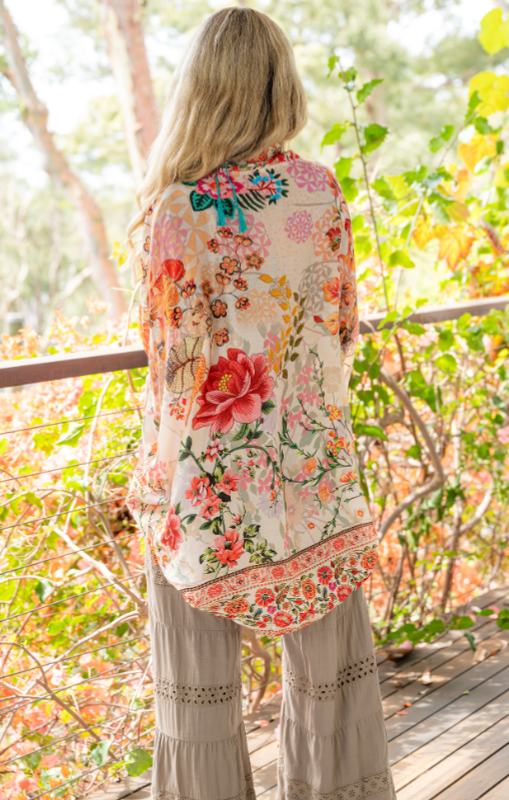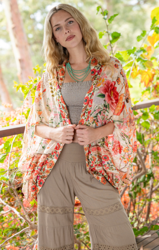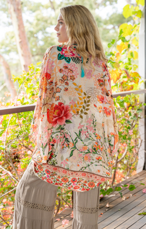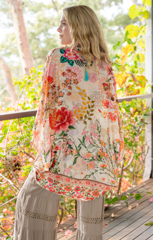Elevate your wardrobe with the Cienna - Rouge Bloom Cape, featuring a stunning floral design inspired by beautiful blooms. Crafted from luxurious silk viscose, this cape drapes effortlessly, offering a soft, breathable feel that enhances your comfort and style. Perfect for making a statement at any occasion.