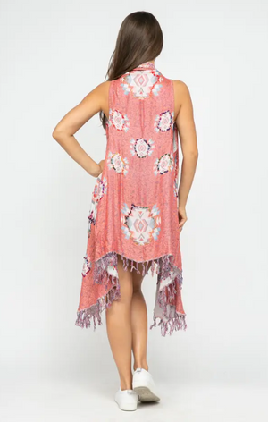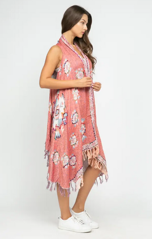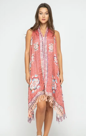 This Raj Vest is detailed with thick stitch embroidery and bold patterns. Refresh your wardrobe with this boho inspired contemporary breezy vest. Easy to layer and up your style.