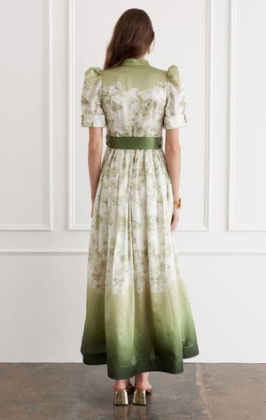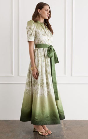The Rosalie Dress embodies a modern twist on a classic silhouette. Woven from the strength of Cotton and the decadent fluidity of Mulberry Silk, allowing it to hold both structure and softness. A bold cascading skirt is met with the delicate detailing of custom luminescent pearl buttons - combining both function and flare.