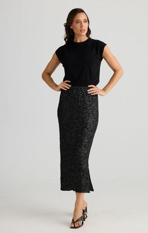 Brave + True - Razzle Skirt Black Sequin - BT25405-1