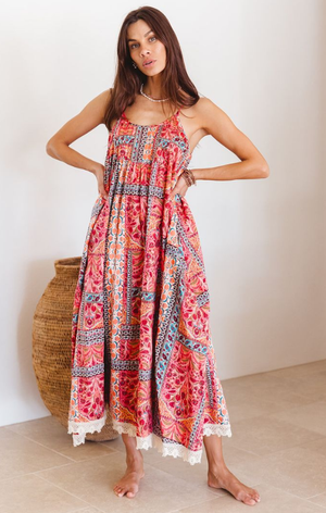 Embrace effortless elegance with the I Am Pylgrym Innova Maxi – Temple. This A-line dress features delicate spaghetti straps and antique lace trim, adding a touch of vintage charm. Pintucks at the front bodice create subtle texture, while its versatile design allows it to be styled with a belt for a polished look. Perfect for beach days or casual outings, it blends comfort and sophistication in one graceful silhouette.
