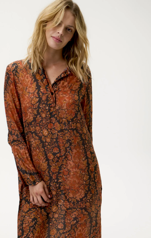The Long Genie will be a sophisticated addition to your wardrobe. The style embraces a straight silhouette for timeless elegance. Crafted from breathable viscose, this maxi features a soft round neckline and fluted cuffs.