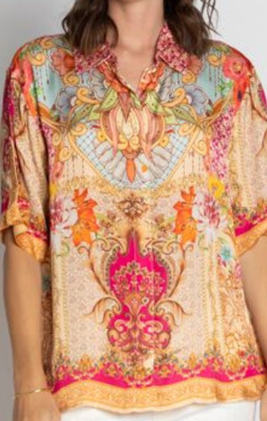 This shirt is all about the stunning print and how beautifully it feels against your skin. Its oversized fit means if you prefer something snug, just size down, or size up for that effortlessly loose vibe. Pair it with the Le Sereno pant for perfect matchy-matchy magic, or style it with white pants or shorts if you’ve got the legs to show off—tie it at the waist for a fun twist, or team it with a skirt or sleek black palazzo pants for a chic, sophisticated look.
