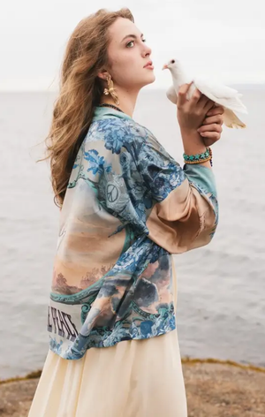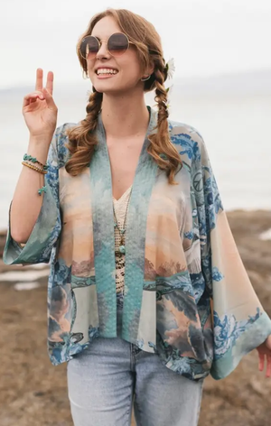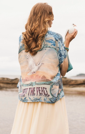 Market of Stars - Peace Out Cropped Kimono Pixie Duster with Doves and Sunrise
