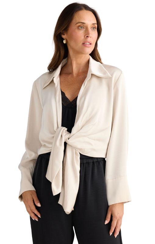 Cienna - Shula Frill Sleeve Tie Top Cienna