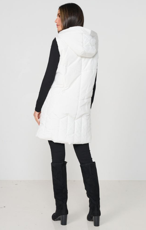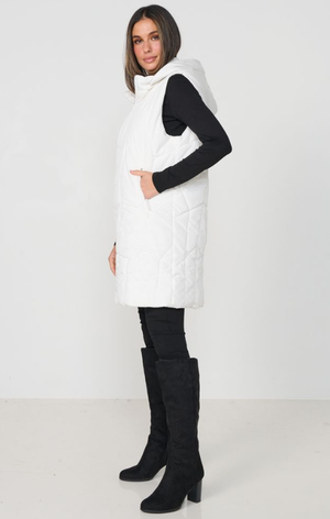 Caju - Puffer Vest - Geometric Panels w/ Removable Hood - Snow - CZ1134