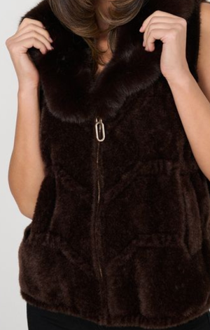 Caju - Vest Faux fur Collar Brown - CZ1173