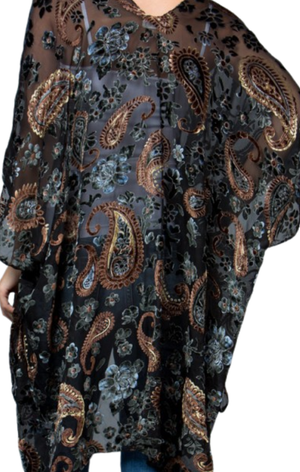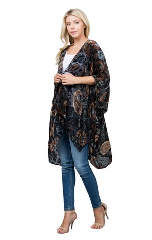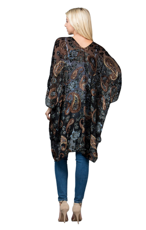 LA Soul - Vintage Paisley Velvet Cape Kimono - KM-235