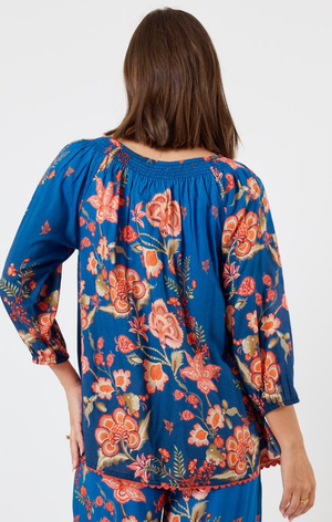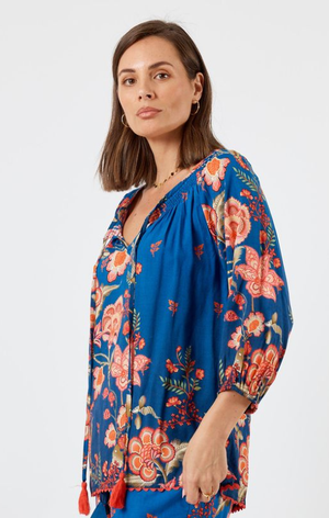 The best-selling shape ever and the value of the season! The Lovis top is perfect for those cooler Autumn days, this shirt features delicate shirring across the Vneck line which can be secured with two neck ties with bright tassles and 3/4 sleeves which finish just below the elbow, gently elasticated. The Lovis top is designed to sit just around the hip line and is finished with an attractive rickrack trim and is very well suited to your favourite jeans or denim skirt.