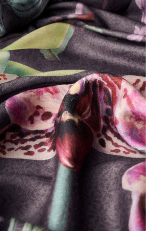 Back by popular demand! Our glorious lux scarves offer sumptuous style with a gorgeous smooth texture and our bespoke Powder prints. The bright florals and inky palette on this design create fantastic depth which is sure to make this scarf a talking point.