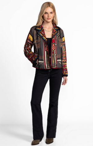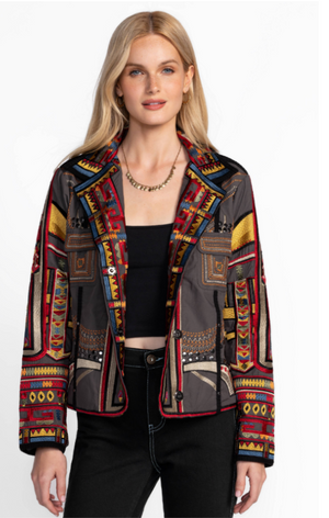 Crafted from a lightweight cotton blend, the Rufus Jacket is intricately embroidered with exquisite colorful detailing. Featuring a collared neckline with an easy snap-front closure, this vibrant jacket is finished with two front patch pockets and two inseam pockets. Layer over a casual top and pair with your favorite jeans for an elevated casual look.