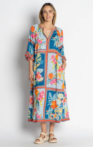 The Serilda Midi Dress in Ocean by LulaLife offers a sophisticated blend of comfort and style. Crafted from 100% viscose, it features a relaxed fit with mid-length sleeves finished with frill cuffs for ease of movement. The V-neck with buttoned entry adds subtle detail, while inset side pockets and a self-tie belt enhance functionality and silhouette definition. Designed in Australia, this dress is an elegant choice for versatile wear.