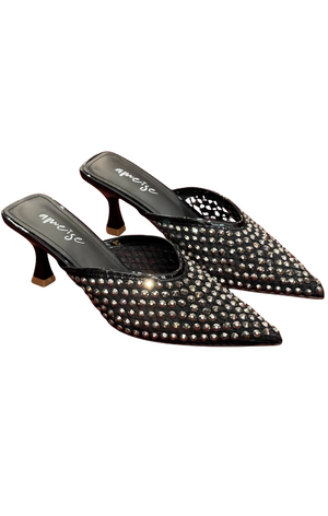 Step into the spotlight with ADELE bling heels! These chic kitten heels sparkle with a stunning diamante pointed toe, making every step shimmer with fun and flair. Embrace comfort while turning heads in style with these dazzling beauties.
