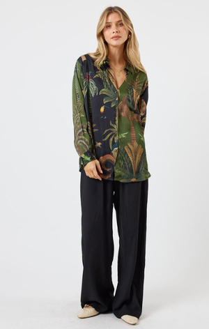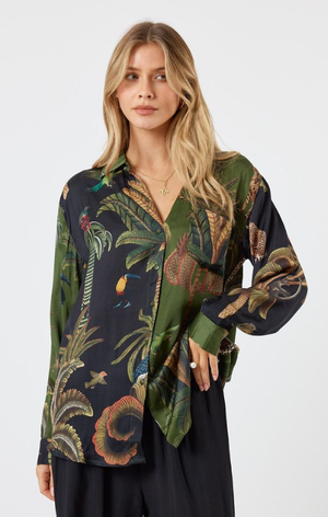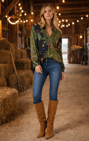 Effortlessly stylish with a touch of the unexpected, the Lula Soul Cheetah Shirt is a beautiful blend of bold print and relaxed elegance. Featuring a rich mix of earthy tones, tropical motifs, and subtle cheetah accents, this piece brings personality and artistry to your everyday wardrobe.