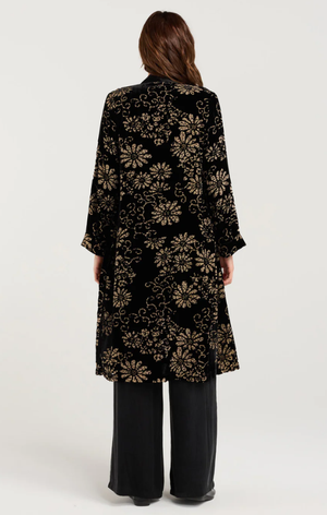 Blackstone - Carrie Viscose Burnout Kimono - Black Daisy Velvet Burnout - BWY267-1