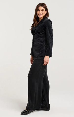 Introducing Blackstone's gorgeous Teddy Velvet Blazer - perfect for those who appreciate a blend of classic style with a modern twist. This blazer adds a soft velvet touch that elevates your wardrobe instantly, offering a luxurious feel and sophisticated appearance ideal for both formal and casual settings. Whether you're attending a business meeting or heading out for the evening, the Teddy Velvet Blazer is your go-to choice for making an impression.