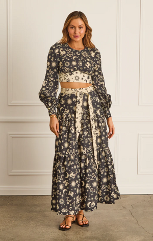 The Eclipse Tia Maxi Skirt by Heaven Australia is crafted from 100% French cotton poplin and is a must-have wardrobe staple. This high waisted maxi skirt features functional side pockets and an invisible side zipper.
