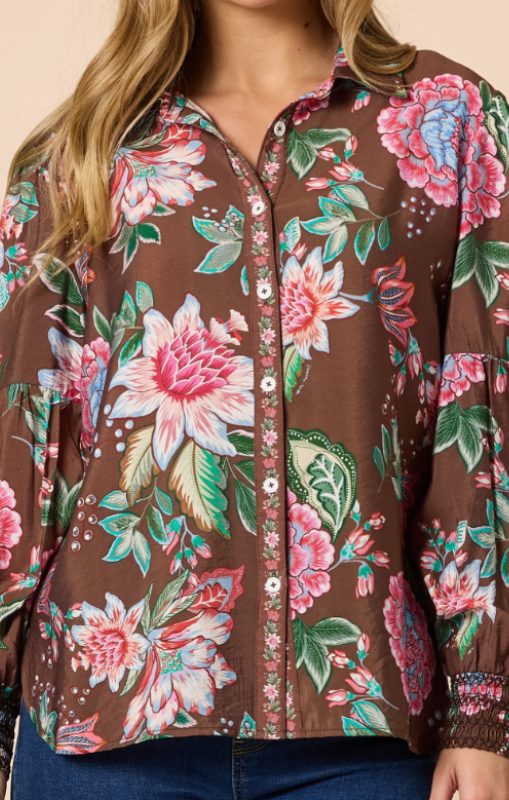Threadz - Bouquet Print Shirt - Chocolate Multi - 48896