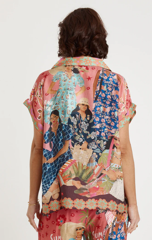 Bright, fun, and effortlessly polished, the LulaSoul Fiesta Shirt is designed to bring colour and ease to your everyday wardrobe. Crafted from smooth 100% satin modal, it drapes softly with a silky, lightweight feel. The relaxed fit, lapelled collar, and full button-through front keep the look clean and versatile, while the short sleeves with cuffs add a modern, tailored touch. Finished with an exclusive digital print and Australian-designed flair, this shirt pairs perfectly with denim, linen, or the matching Fiesta Pant for a bold, standout set.