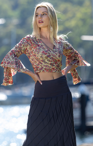 Dare to stand out in Cienna—a bold tie top that commands attention with its striking Shula frill sleeves. The tie detail adds an unexpected twist that transforms an everyday top into a statement-making essential.