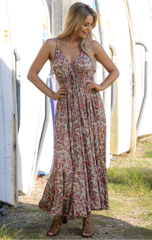 Twirl into magic with the Cienna—a Shula Gypsy Dress that's equal parts bohemian charm and carefree spirit. Flowing fabrics dance with every movement, while rich colours and intricate details whisper tales of wanderlust. Whether you're heading to a festival, a garden gathering, or simply living your best boho life, this dress transforms any moment into an adventure.