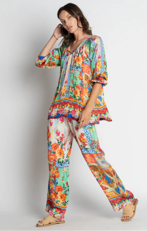 Step into effortless style with the LulaSoul Carlisle Pant, featuring a relaxed fit and flattering straight-leg silhouette. The shirred waist yoke offers comfort and shape, while the full-length design and vibrant digital scarf print add a touch of bohemian elegance. Crafted from 100% satin modal for a soft, luxe feel, these pants include practical side pockets for everyday ease. Perfect for dressing up or down, the Carlisle Pant embodies the laid-back sophistication of LulaSoul, designed in Australia for the modern woman.